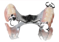 入れ歯の大部分が金属のフレームでできている義歯になります。ご自身の歯にしっかり適合し、がたつきが少なく、また、お口にぴったり合っているので、快適にお食事をとっていただけます。また、金属でできているため、保険義歯より薄くすることができますので、違和感が少ないです。